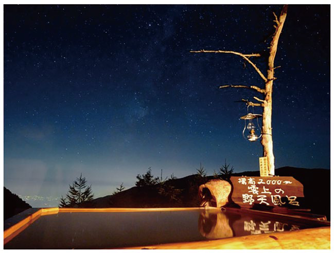 ●高峰温泉...眼下に高峰渓谷を見下ろす標高2000mの野天風呂。