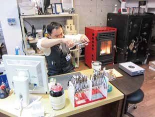 カリフォルニアの大学で最新のオプトメトリーを学ぶ店長が細かくカウンセリング、フィッティング調整を行う。