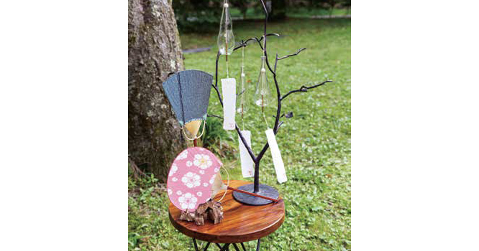 軽井沢の夏を演出する伝統手織り「ぼた織」の うちわ(3,780円)とガラスの風鈴(3,800円)。