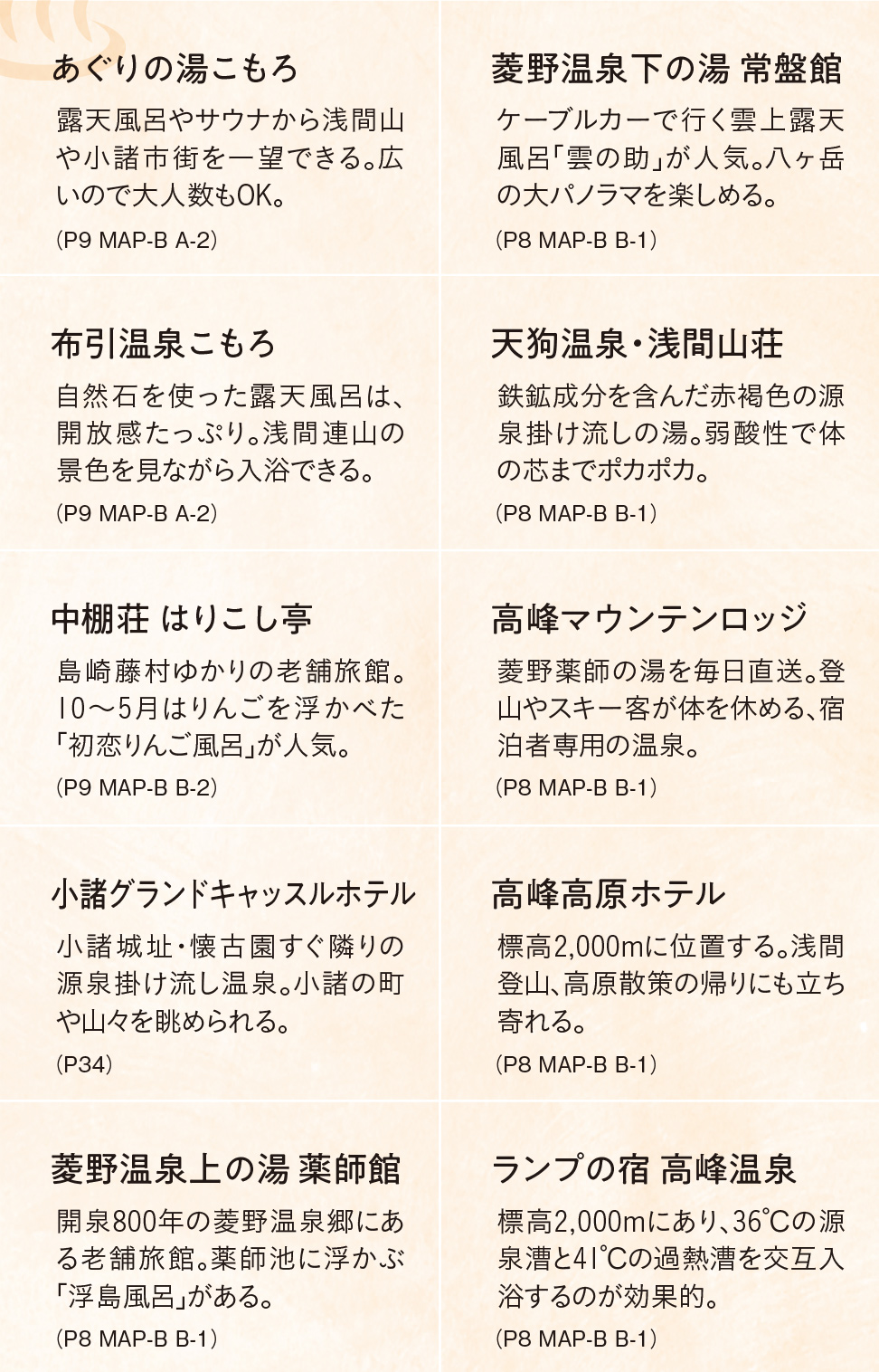 軽井沢ウェブTOP > スタイルマガジン > vol39 とうとうきたきた。秋と冬。 > 08 秋冬の小諸でしたい9のこと > ⑧ 10の温泉を湯覇。