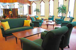光に包まれた明るいラウンジ。のんびりできておすすめ。