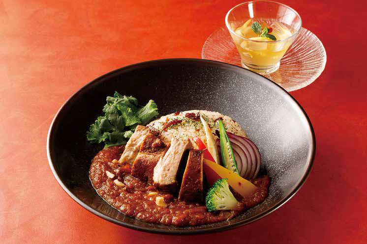信州ハーブ鶏と夏野菜の山椒スープカレー (サラダ・五穀入りライス付き) ¥2,100