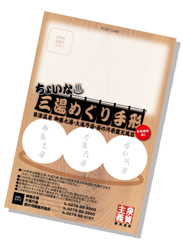 3カ所の温泉に入れて、絵葉書にもなる手形は、有効期限なし。