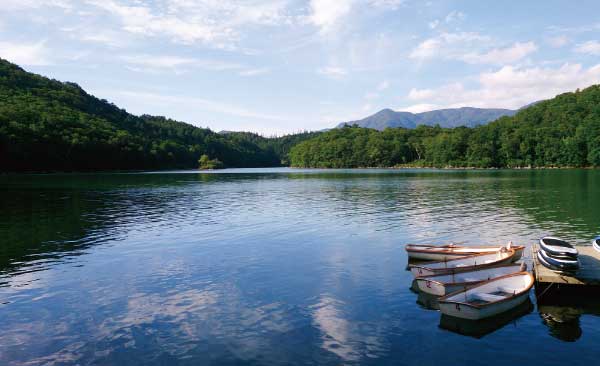白樺やダケカンバの木に囲まれ、夏はハイキングに、ボート遊び、BBQ、キャンプなどのアクティビティを楽しめる。
