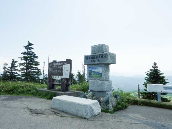 日本の国道の中で、標高が最も高い2,172m地点に、標柱が立つ。冬季は閉鎖されてしまうため、夏だけ行けるスポット。