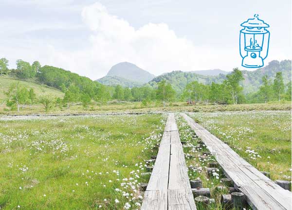 県の天然記念物に指定されている、約7.9haの高層湿原。四季折々の花が咲き、アップダウンのない木道を散策できる。