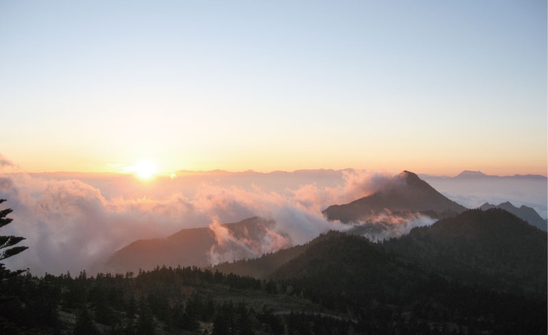 スカイレーターとスカイリフトを乗り継ぎ、標高2,307mの横手山山頂へ。眼下に広がる雲海は一見の価値アリ。
