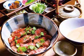 信州牛を使った話題の肉まぶし。そのままや、お茶づけスタ イル、薬味を添えるなど、味わいの変化を楽しんで。
