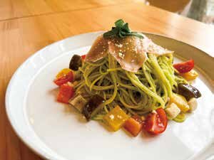 生ハムと夏野菜のマリネの冷製ジェノベーゼパスタ(数量限定)
