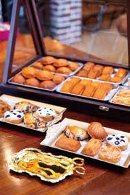 毎朝、焼き立てのリーズナブル なお菓子が並ぶ。