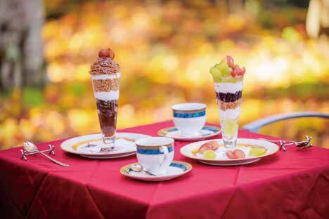 樹々の色づく秋にぜひ訪れたい、雲場池に面したカフェ。2階の店内からは鮮やかな紅葉が眺められる。ランチは季節ごとに変わるパスタや高原焼き野菜のカレー、信州ポークや信州牛のお重など、地元食材にこだわったメニューが並ぶ。デザートは、旬のフルーツや和栗を使ったパフェのほか、ケーキセットもあり充実。サンドイッチやドリンク、パフェはテイクアウトOKなので、散策途中に立ち寄ってみては。