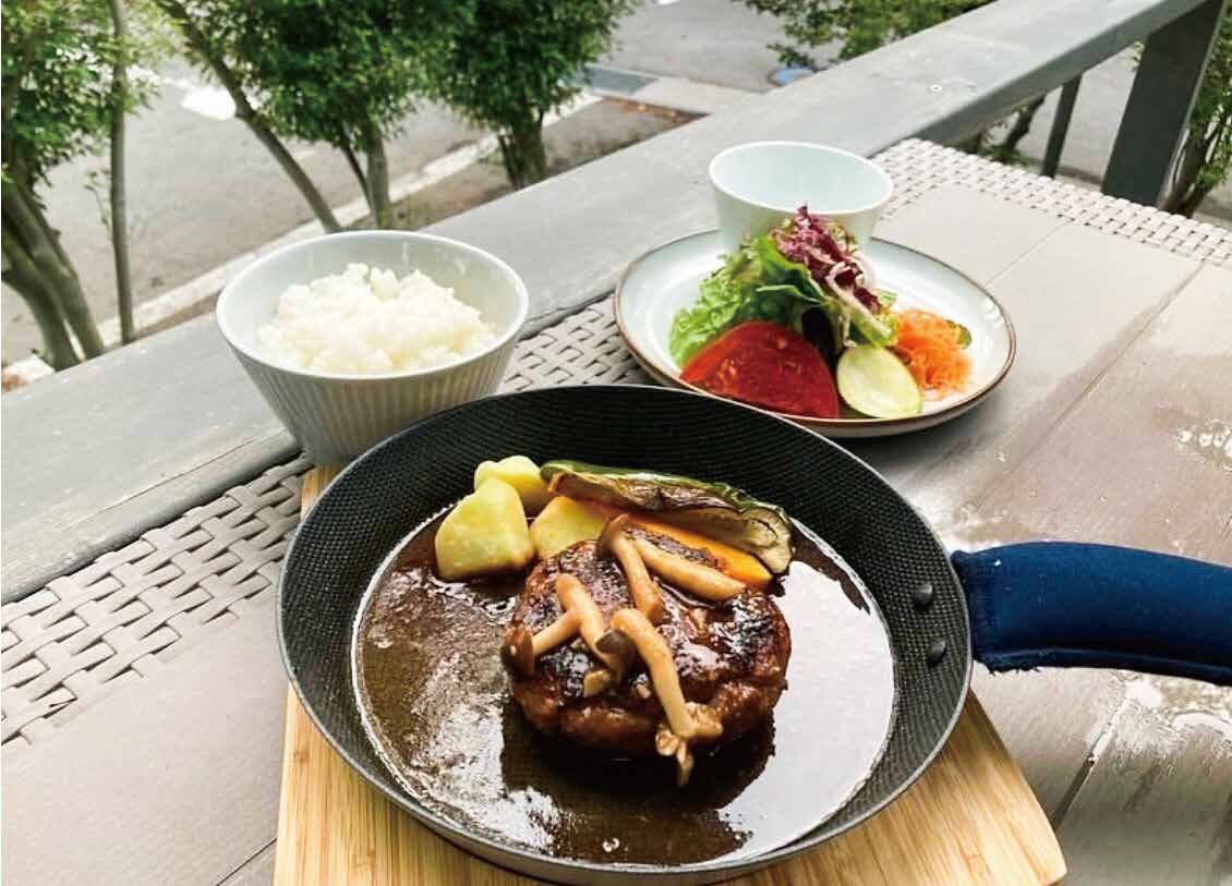 ランチで人気の信州産牛のハンバーグは、ライスとサラダ、スープ付き。