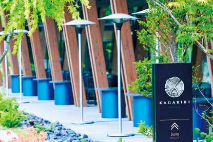 スタイリッシュな空間で、素材本来の美味しさを引き立てる薪火イタリアンが味わえるオールデイダイニング「KAGARIBI」は、別荘や地元の常連も多い。薪火でグリルした食材は、外はカリッと中はジューシー。薪の香りが食欲をそそる。専属パティシエやベーカリーシェフが手掛けるスイーツや自家製パンはテイクアウト可。季節限定商品も要チェック。