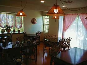 レースのカーテンがかわいいダイニングルーム。