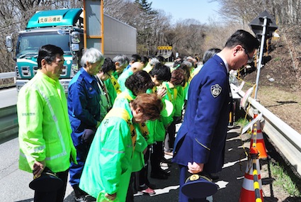 バス転落事故から3ヶ月 現場近くで安全運転、シートベルト着用呼びかけ