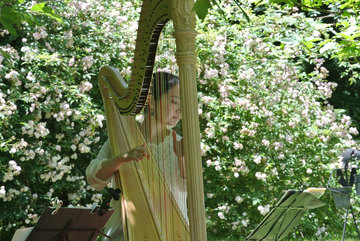 薔薇の香りとハープ・ヴァイオリン・チェロ3重奏の生演奏を
