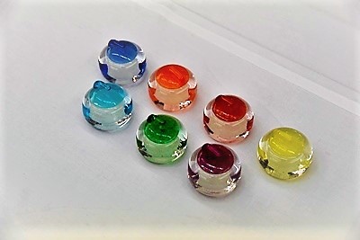 カーリングストーン型オブジェは太陽光や紫外線を蓄えて暗闇で発光する蓄光ガラスを使って作っている。製造を担当している井下翔さんは「一つ一つ手作りなので、形の違いを楽しんでほしいです」と語った。来年以降店頭で販売予定。