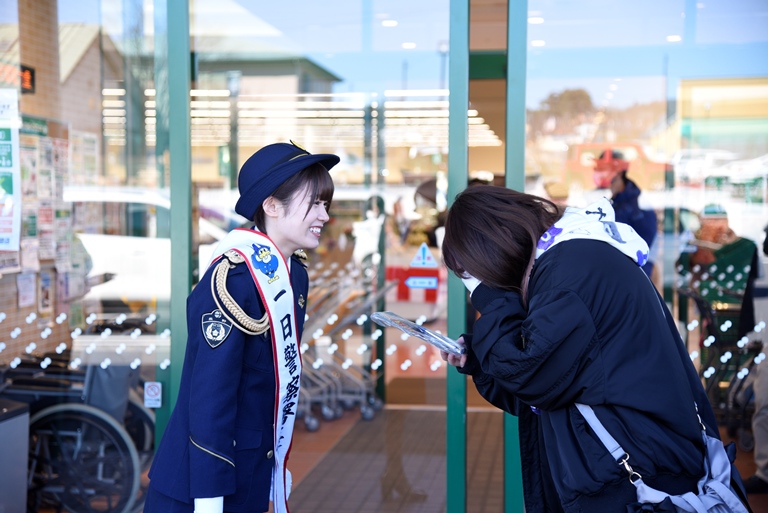 佐久警察署は年末の特別警戒及び交通安全運動に合わせて、女性アイドルグループNGT48メンバーで御代田町ふるさと大使の安藤千伽奈さんに、1日警察署長を12月14日に委嘱した。飲み会後の飲酒運転や、年末に増える特殊詐欺被害の注意喚起が目的。委嘱式が同日、御代田町役場で行われ、安藤さんは「1日警察署長として、元気な笑顔で防犯や交通安全を啓発していきます」と挨拶した。その後、ツルヤ御代田店やイオンモール佐久平を訪れ、来店者や退店者に「おはようございます。交通安全に気を付けてくださいね」と笑顔で呼びかけ、「特殊詐欺にご用心」と書かれた除菌シートなどを手渡していた。
