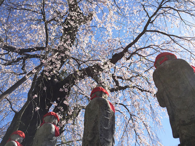 旧軽井沢銀座通り沿い神宮寺境内にあるシダレザクラは、推定樹齢400年。碓氷峠を越えてきた江戸時代の旅人も、この桜を見てほっと一息ついたのかもしれません。