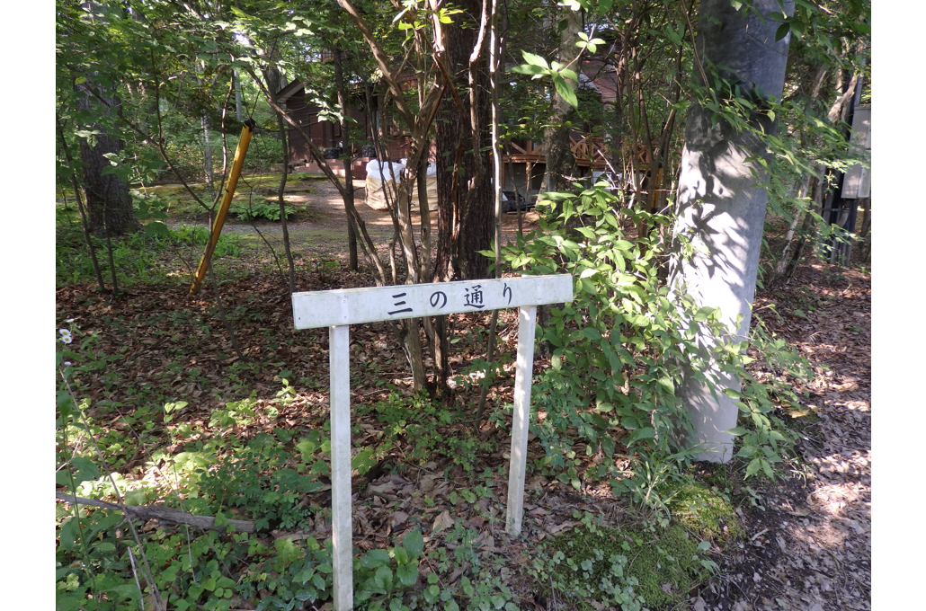 この辺り一帯は、昭和初期に早稲田大学教授市村今朝蔵夫妻の提唱で、学者や文化人を中心に南原会という文化村が設立された土地。軽井沢の豊かな自然環境を守りたいという住民の精神が今も息づいています。多くの道路が未舗装のまま残され、森の雰囲気にひたれる散策にぴったり。