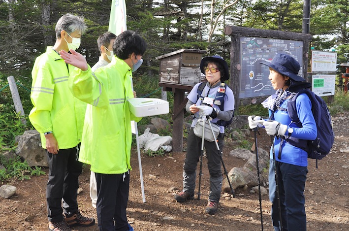 「信州 火山防災月間」スタート 浅間山登山道入口で注意呼びかけ