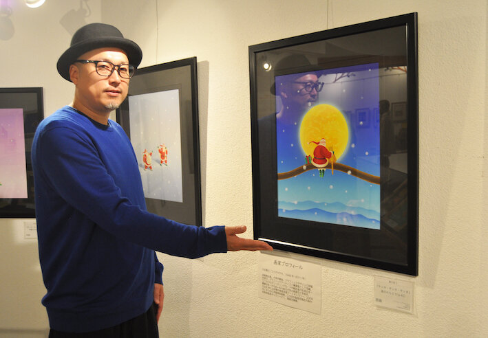 サンタクロースをモチーフに 描き続けた小出真己さんの作品展示