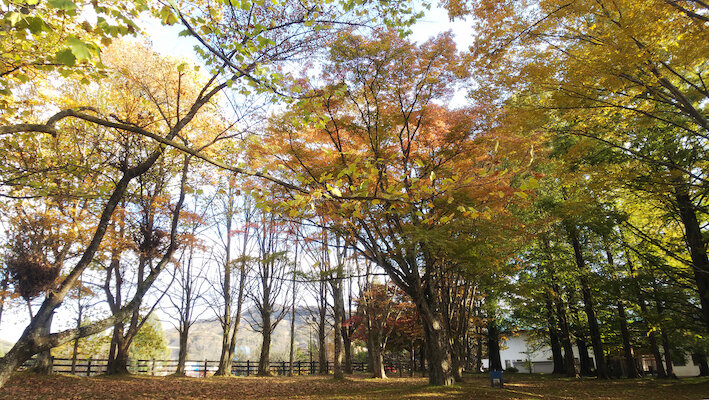 (矢ヶ崎公園駐車場と新軽井沢会館の間の緑地。秋に撮影)