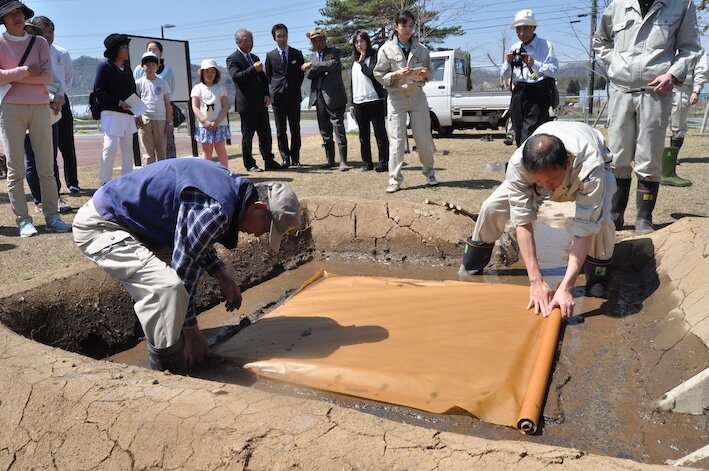 「保温折衷苗代」は、油を塗った和紙で苗床を覆って保温し苗の成長を促す稲作技術。寒い時期から苗を生育できると、軽井沢から北日本各地へ広まり、米の収穫量の増加に貢献した。