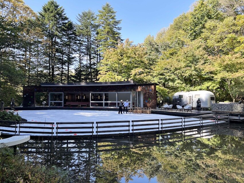 スケートリンクは軽井沢野鳥の森の入り口にあり、これから11月中旬にかけてモミジやカラマツの紅葉を眺めながら滑りを楽しめる。現在、滑走できるのは冷却装置で凍らせた「人工エリア」で、全体の半分ほど。真冬日が続き池全体で滑れるようになるのは、例年だと12月末の見込みだ。