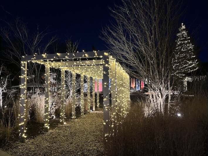 施設内のツリーや四角いフレームの回廊などがイルミネーションで彩られる。建物壁面に展示しているアート写真もライトアップ。施設内の店舗キャボットコーヴでは、アンティーク雑貨を販売するクリスマスマーケットも(12月22日まで)。