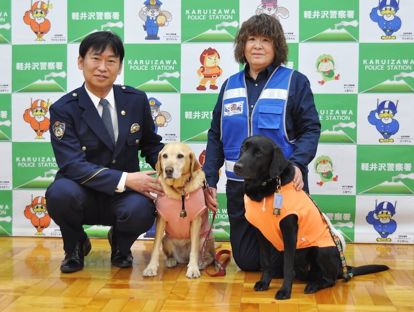 軽井沢署、嘱託警察犬2頭を委嘱 ラブラドルの母娘
