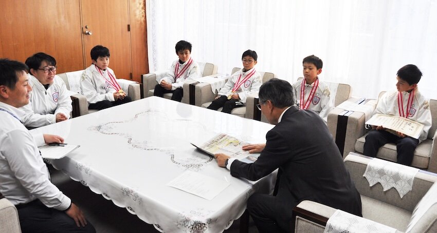 第7回全農杯全日本小学生カーリング選手権大会(2025年12月21日、横浜銀行アイスアリーナ)で、「軽井沢ジュニア」が2年ぶり3度目の優勝を果たした。メンバーとコーチは1月7日、土屋三千夫町長を訪れ、優勝を報告した。