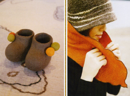 羊の原毛に手を えて形にしていくフェルトワーク。
