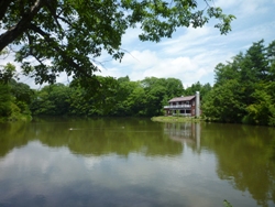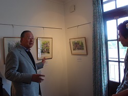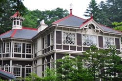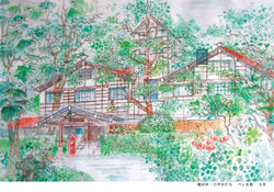 水彩画家の五十嵐吉彦さんが軽井沢の風景を描いた作品を、軽井沢タリアセン内睡鳩荘で展示している。15年前から軽井沢を訪れスケッチを行っている五十嵐さん。「ヴォーリズ建築・水彩スケッチ研究会」の会長を務め、全国のヴォーリズ建築を描いてきたことが縁となり、ヴォーリズ建築のひとつである睡鳩荘で展覧会を開くことになった。五十嵐さんは軽井沢について、「自然が美しい場所は数多くあるが、軽井沢には豊かな自然に加え歴史的建造物も多く残っている。夏だけでなく、春や秋も素晴らしい」と話している。