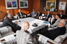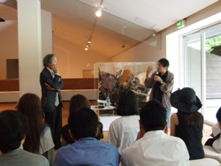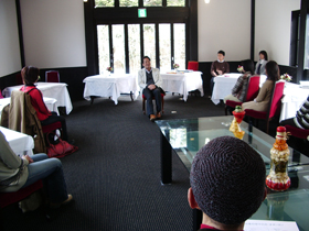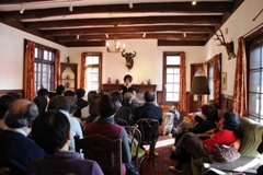 10月29日、少量で数十杯淹れられるエコな台湾茶を楽しむ会が、大坂屋家具店で開かれた。料理 究家の日出山みなみさん主催の催しで、町内のレストラン、ホテル関係者など約30名が参 。台湾より日出山さんのご友人でもある沈夫妻を講師に招き、台湾茶の楽しみ方や良いお茶とはなどのレクチャーの後、台湾茶を実際に楽しん 。