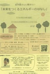 1~6才の子供をの母親が運営する「おやこ企画」が12月13日、田中優氏を講師に迎えて「未来をつくるエネルギーのはなし」を行う。