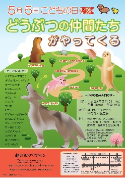 軽井沢タリアセンで、5月5日に「どうぶつの仲間たちがやってくる」が行われる。