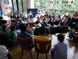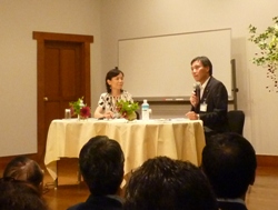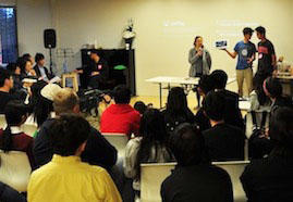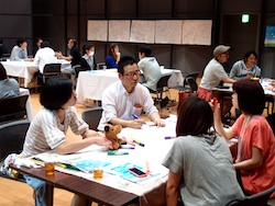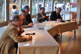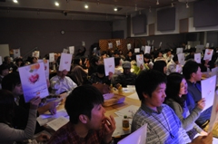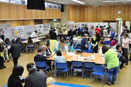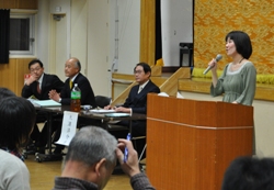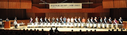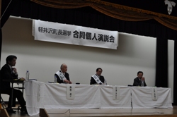 コーディネーターは軽井沢町在住の演出家星野和彦さんが務めた。「私のビジョン」「子育て、教育、介護」「地域経済」「私の自画像」と4つのテーマごと、くじ引きで決めた順番通り、各候補者がショートスピーチを行った。「今の町政に満足しているか」など○×で答える質問コーナーも設けた。