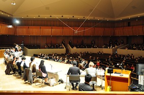 軽井沢町議選(4月26日投開票)に立候補した22氏(定数16)の合同個人演説会が22日、軽井沢大賀ホールで開かれた。22人の候補者が主催し、軽井沢青年会議所が企画、運営した。候補者は取り組みたい活動などについてそれぞれの主張を展開。町民ら約250人が耳を傾けた。