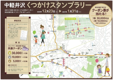 スタンプを3個集めて応募すると、利用券や地元特産物が抽選で当たる「軽井沢ラッキースタンプラリー」(