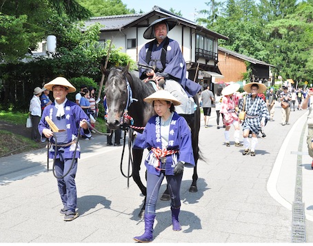 追分の夏のまつり「しなの追分馬子唄道中」が7月28日、追分宿で開かれる。馬子が馬を曳いて歩きながら