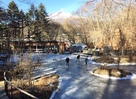 ピッキオのケラ池スケートリンクの天然氷エリアが結氷し12月22日、全面滑走が可能になった。氷の奥に