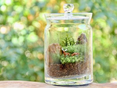 ハルニレテラスでこの夏人気だった苔のテラリウムを作るワークショップが9月も開催される。ポットの中に自