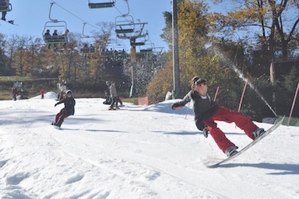 軽井沢プリンスホテルスキー場が11月3日、長野県内で最も早く営業をスタートし、晴天の中、多くのスキ
