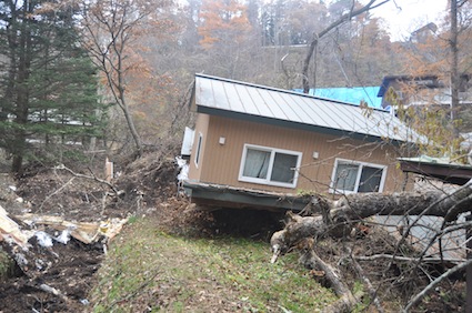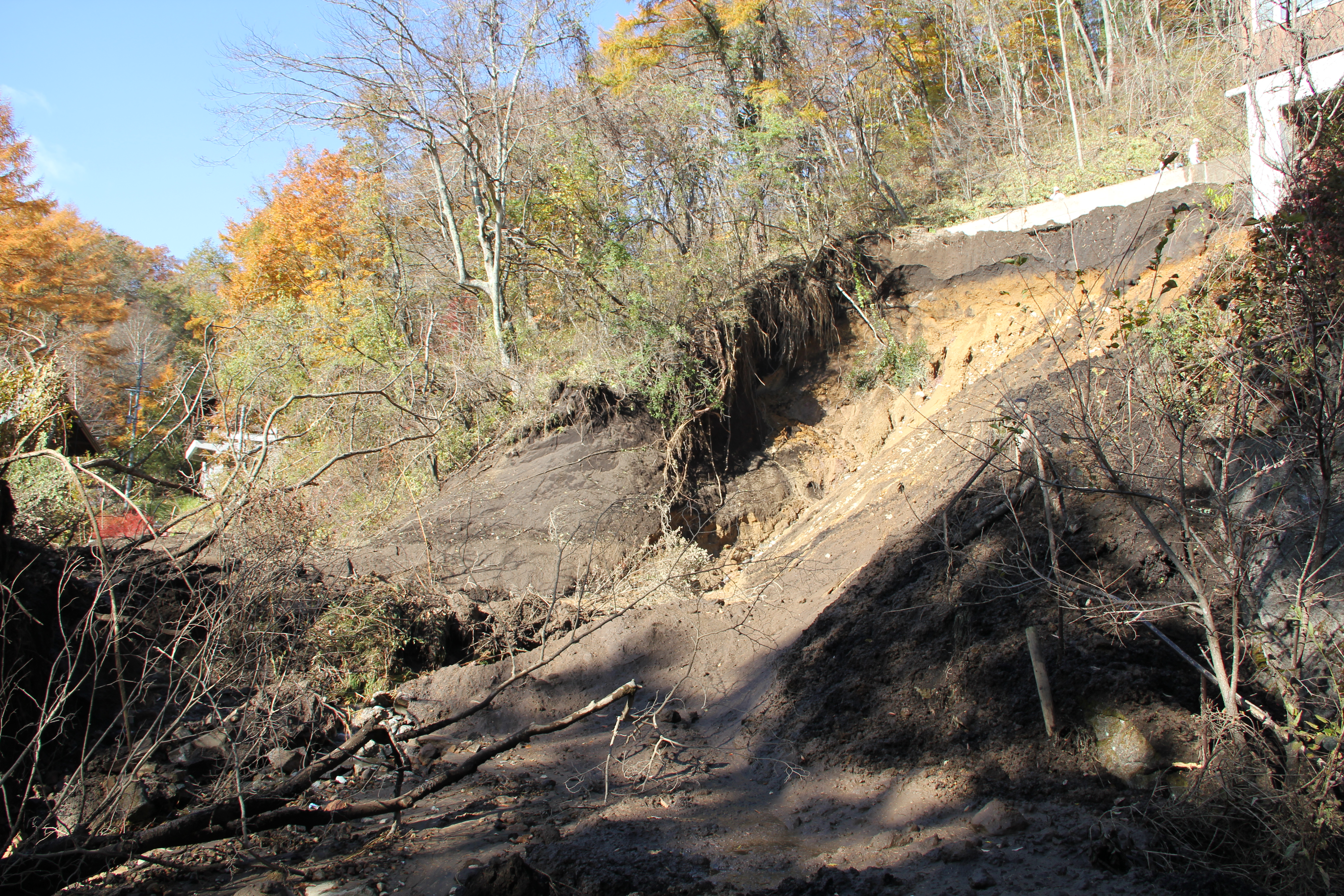 軽井沢町の別荘地、千ヶ滝西区せせらぎの里で11月9日未明に起きた、御影用水の越流による土砂崩落で、