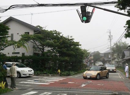 軽井沢警察署は7月21日、借宿公民館近くの交通事故が多かった交差点の信号機を、一灯点滅式から通常の