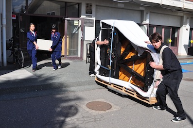 4月から新校舎での新学期がスタートする軽井沢中学校で3月22日、引っ越し作業が始まった。1、2年生