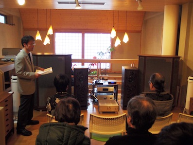 旧軽井沢銀座通りの大坂屋家具店で、2月20日、軽井沢彫スピーカーの試聴会が行われた。同店の木地師・