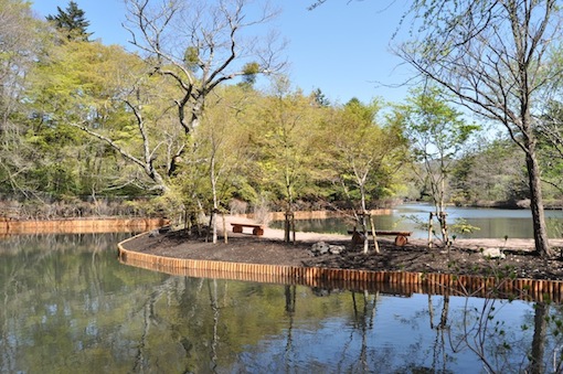 雲場池の環境改善に向け、軽井沢町が進めていた整備工事が完了し4月26日、5カ月ぶりに一般開放された