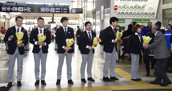平昌オリンピック男子カーリング日本代表のSC軽井沢クラブの選手、コーチらは2月27日、地元の軽井沢